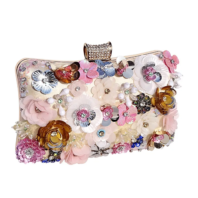 Floral Sequin Applique Evening Bag Shoulder Bag